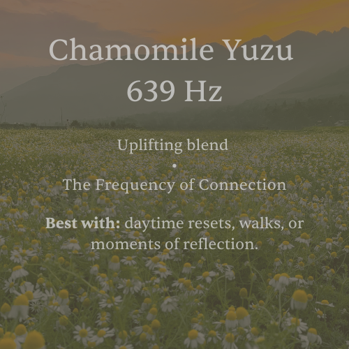Bright yuzu zest over a tender chamomile infusion. Sparkling citrus up top, a honeyed-herbal heart, and a clean, tea-like finish—fresh, calming, quietly sunny.